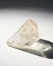 This striking geometric Quartz Crystal is a true natural masterpiece, sourced directly from Brazil. Measuring approximately 3 x 2.5 inches and showcasing a slightly golden hue, this one-of-a-kind piece is a captivating addition to any collection.