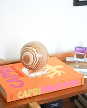 Experience the powerful grounding energy of this one-of-a-kind banded Aragonite sphere, sourced from Morocco. Weighing 2.5kg (5.5 lbs), this stunning crystal showcases mesmerizing natural banding, making it a statement piece for any collection.