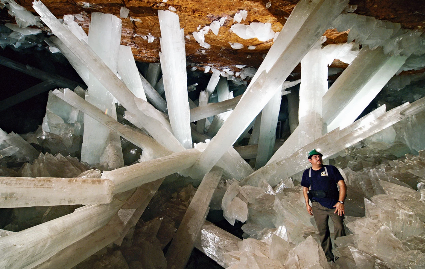 The giant selenite crystals in Naica’s Cave of the Crystals (Chihuahua) — some up to 39 ft (≈11 m) long and ~55 tons — among the largest natural crystals ever discovered.