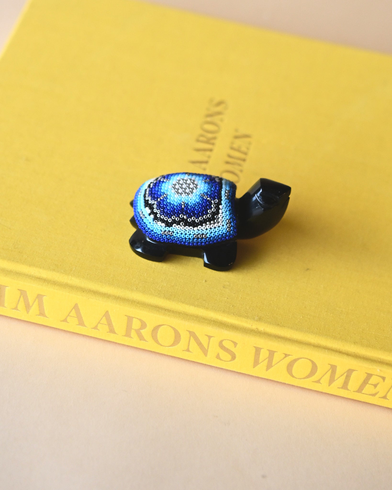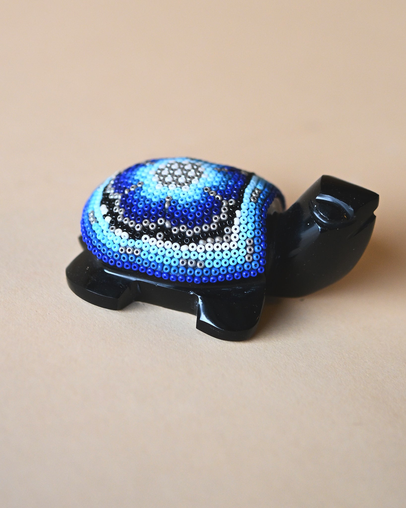 Obsidian Turtle with Hand-Beaded Shell