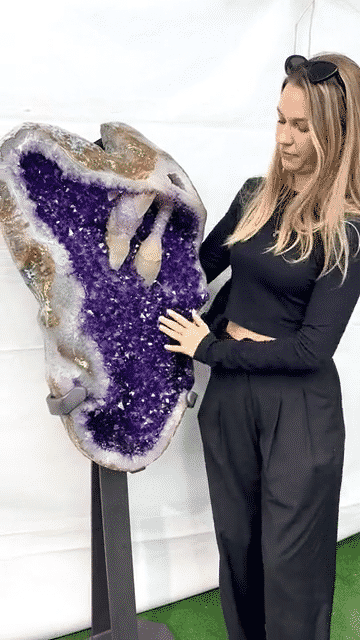 Rinse with cool water and let air dry. Avoid prolonged direct sunlight to preserve the deep purple color of the amethyst geodes.