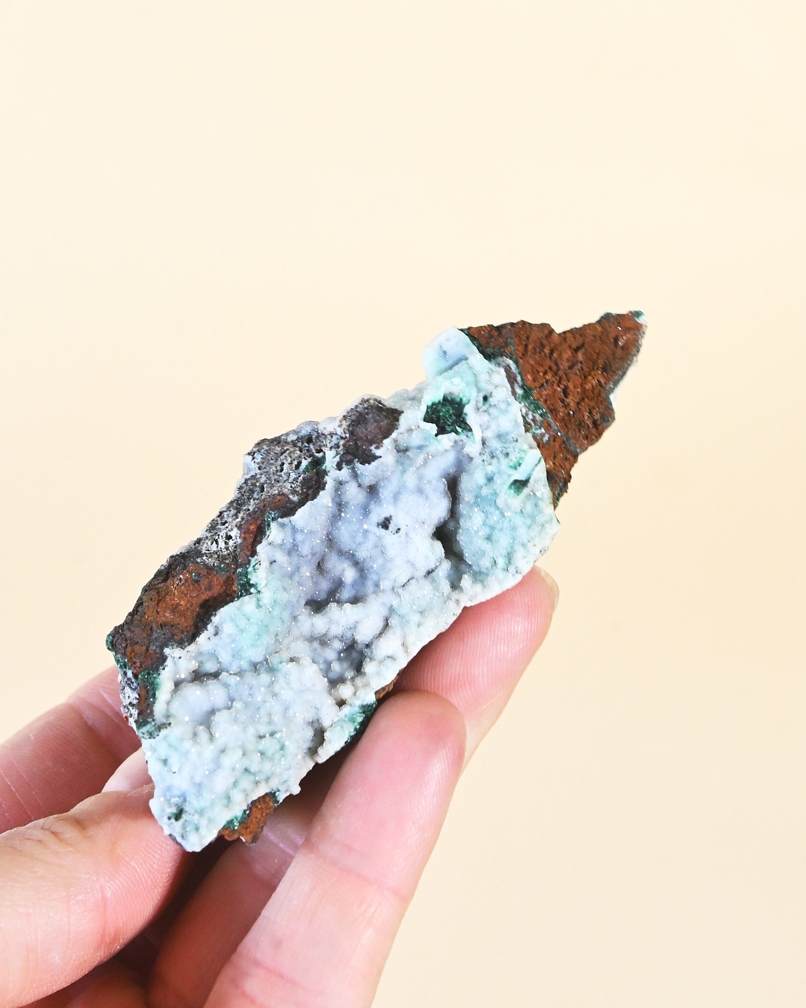 - Rare & Unique Formation – A stunning combination of Chrysocolla’s calming blues and Malachite’s rich greens, accented with natural druzy sparkle.