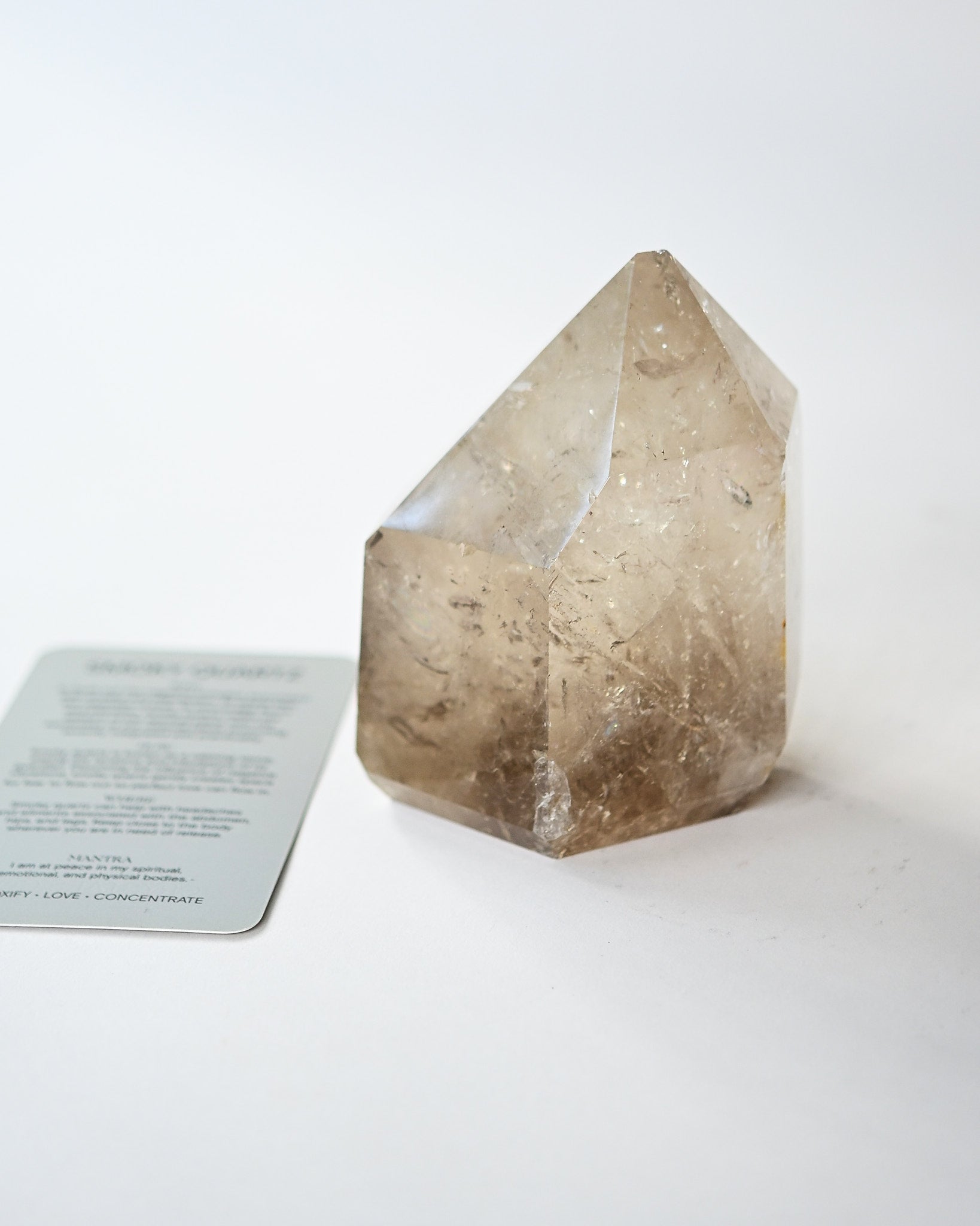 This smoky quartz polished point from Brazil weighs 1.25 kg (2.75 lbs) and showcases rich grounding tones with natural clarity, veils, and subtle rainbows that shimmer in the light. Hand-polished to highlight its natural structure, this piece is both a statement in décor and a powerful energetic ally.