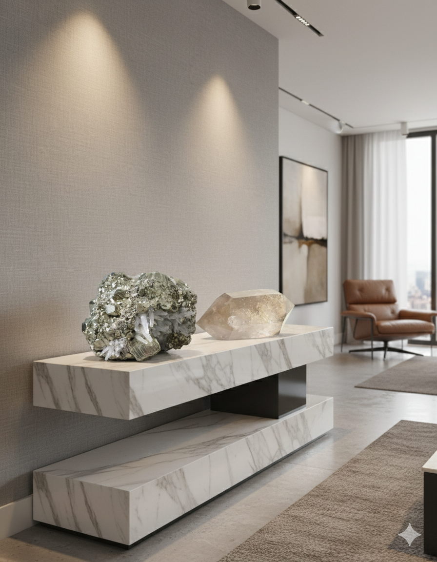 Two extraordinary, one-of-a-kind crystals—each a geological masterpiece—curated for discerning collectors and design connoisseurs.
