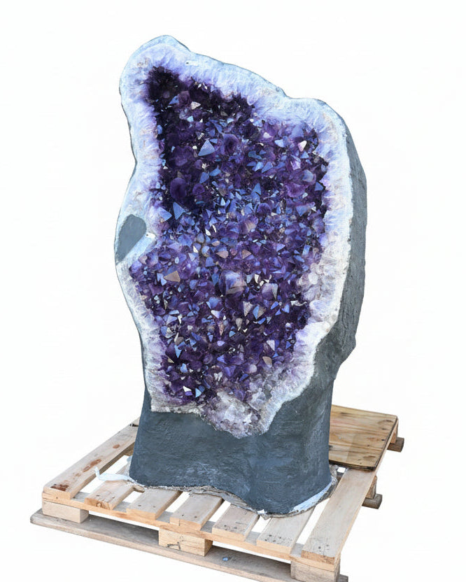 This item requires specialized, heavy-lift logistics and palletized freight shipping. Professional white-glove installation is mandatory due to the weight and scale of the piece. To maintain the crystal's luster, dust the interior using compressed air or a soft-bristled brush; avoid any water-based cleaning to preserve the mineral matrix.