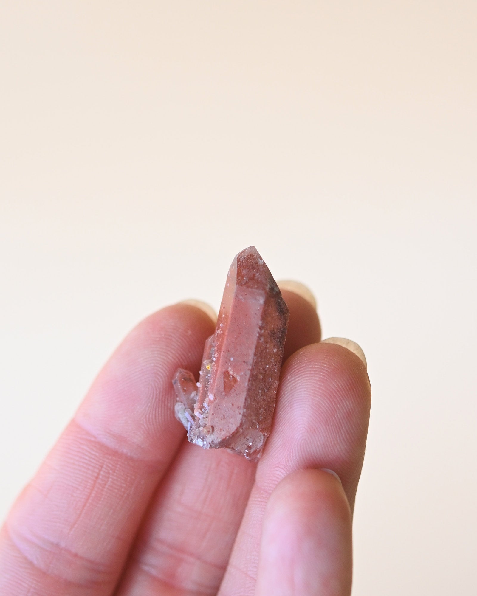 Orange River quartz forms in river-worn alluvial deposits where crystals have weathered out of surrounding rock over time. Iron oxide coatings and inclusions give these quartz points their signature warm red and orange tones, reminiscent of desert sunsets and earth-rich landscapes.