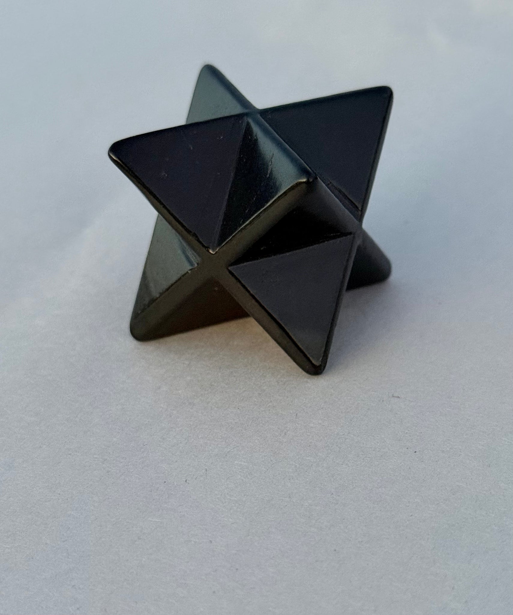 The Merkaba shape—formed by interlocking tetrahedrons—is often associated with balance, alignment, and the integration of opposing forces. In shungite, it takes on a distinctly grounding and stabilizing quality.
